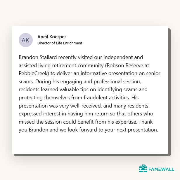 Scams put entire communities at risk, not just individuals. Our Community Programs give organizations clear visibility into scam trends, practical reporting tools, and resources that make prevention part of everyday life. With shared awareness and timely insights, your staff, residents, and families can work together to recognize scams early and stop fraud before it spreads.